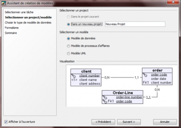 Sélectionnez “Modèle conceptuel de données” pour continuer :