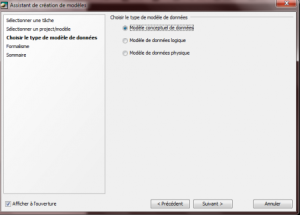 Sélectionnez “Modèle conceptuel de données” pour continuer :